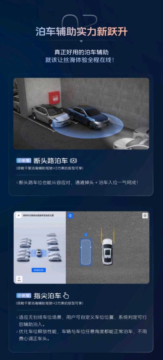 泊車與用車便利性也在此次升級中得到了顯著提升。系統新增“斷頭路車位泊車”與“指尖泊車”功能,支持用戶在無劃線車位或狹窄通道場景下輕松完成泊車操作。此外,540°全景影像新增輪轂視圖,有效避免輪轂剮蹭風險。電池管理方面則新增健康充電與波谷充電模式,兼顧電池壽命與用電經濟性,體現出智能化技術對用戶體驗的細致關照。