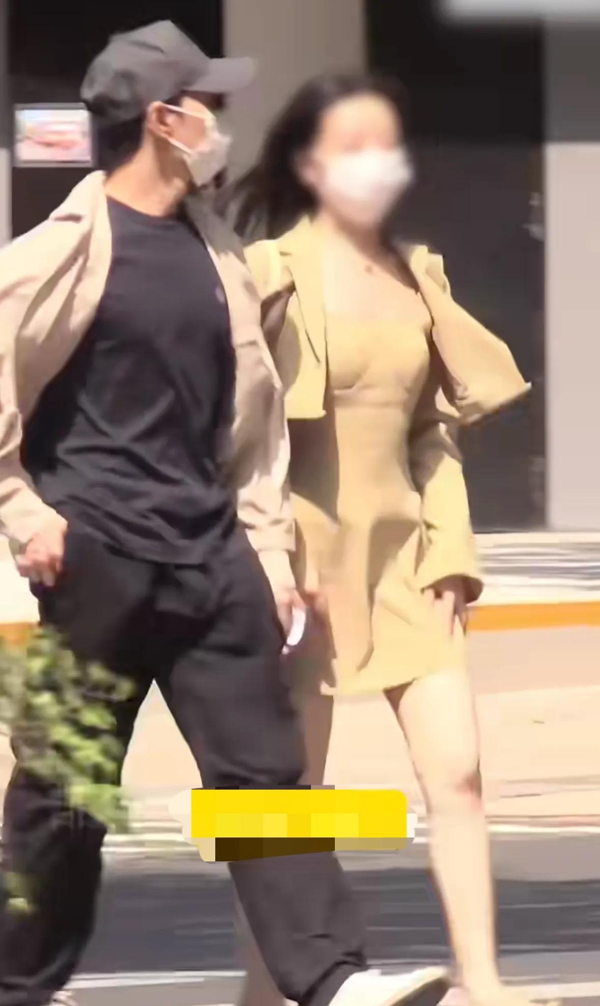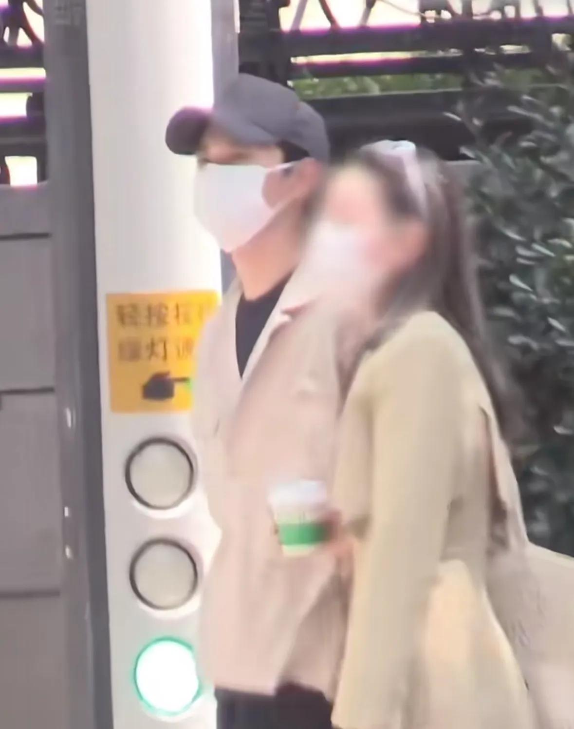 看穿搭感覺不太像最近的,因為穿的衣服都還是挺多的,曹駿穿著卡其色的外套,搭配黑色褲子,和他一起挽手的女生,也穿著駝色的套裝。兩人都戴著口罩,打扮低調,捂的比較嚴實。