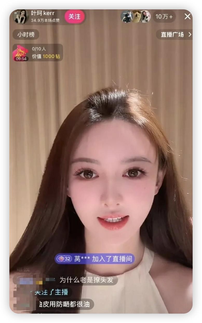 鏡頭前的葉珂呢頂著新染的長發,臉對比幾個月前稍微圓潤了點,一邊逗貓一邊和助理自說自話的推薦化妝品,根本不搭理滿屏的彈幕。