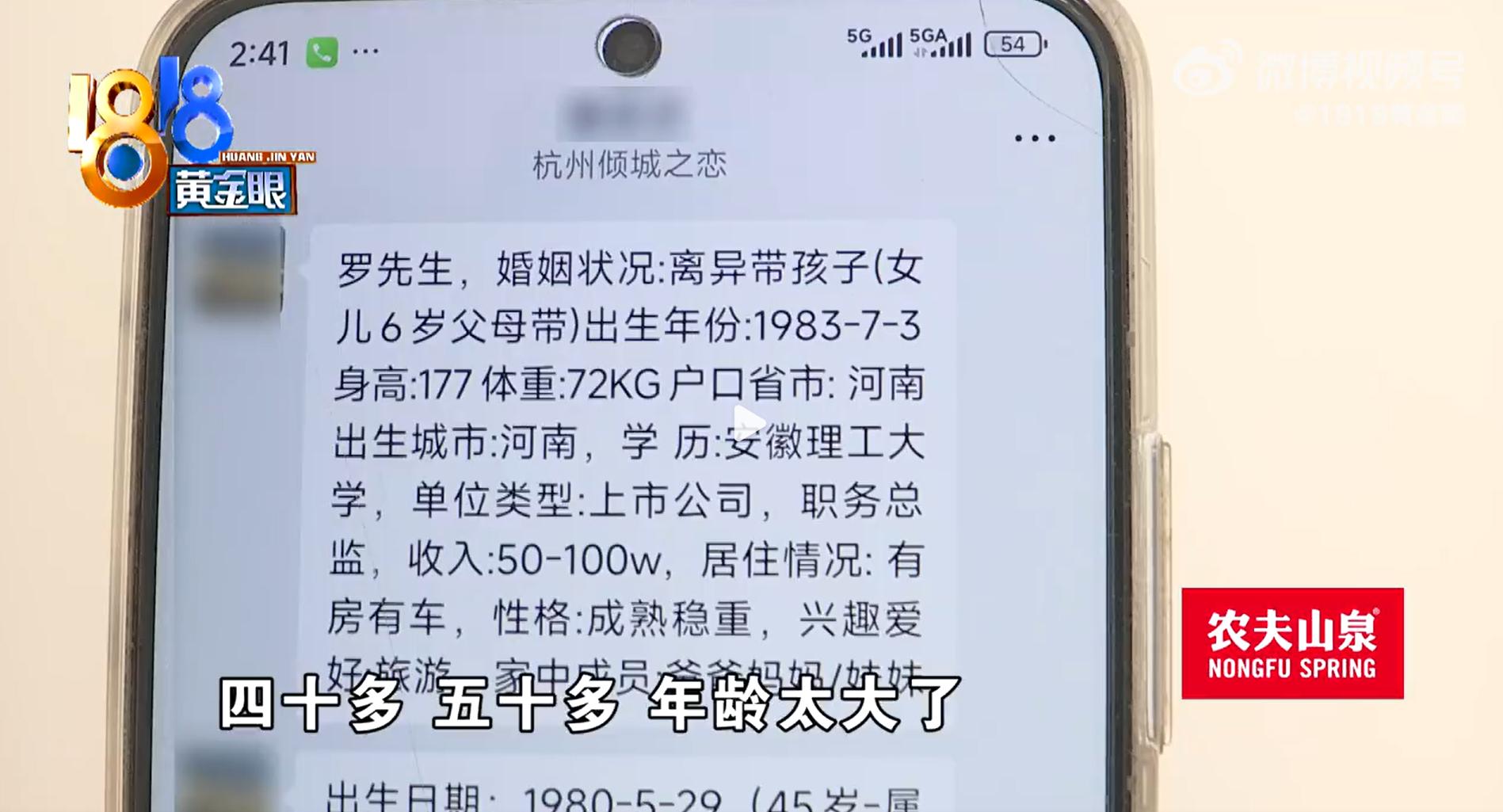 27歲杭州姑娘邱女士花6萬找婚介,明確要求“年齡差10歲內、好看、本地有房有車工作穩定”,結果被安排見四五十歲對象。機構回應:年輕優質男要求高,年齡大的“匹配度”更靈活。這場“精準匹配”的婚戀鬧劇,到底是誰在給愛情標價?