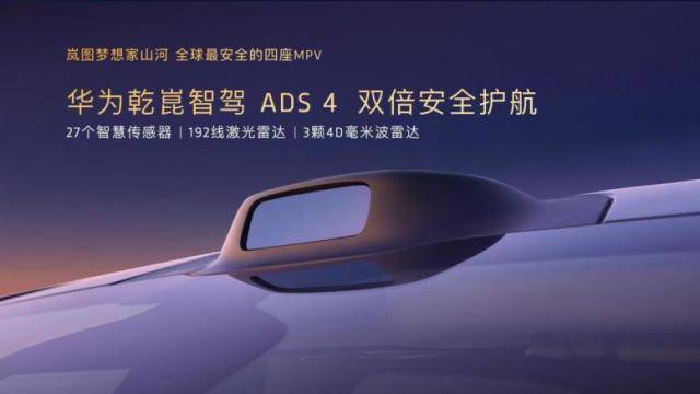 對(duì)于商界精英而言,安全從來(lái)不是“選擇題”,是關(guān)乎家庭圓滿、事業(yè)長(zhǎng)青的頭等大事。為解決傳統(tǒng)四座MPV不夠安全的痛點(diǎn),嵐圖夢(mèng)想家山河聯(lián)合合作伙伴華為,以超一流的整車制造標(biāo)準(zhǔn),打造全球最安全的四座MPV。新車搭載華為乾崑智駕ADS 4,硬件、架構(gòu)和算法全面升級(jí),集頂尖主動(dòng)安全、被動(dòng)安全、隱私安全、健康安全于一身,全面匹配商務(wù)精英的安全剛需,為用戶帶來(lái)“山河”永固般的安心保障。